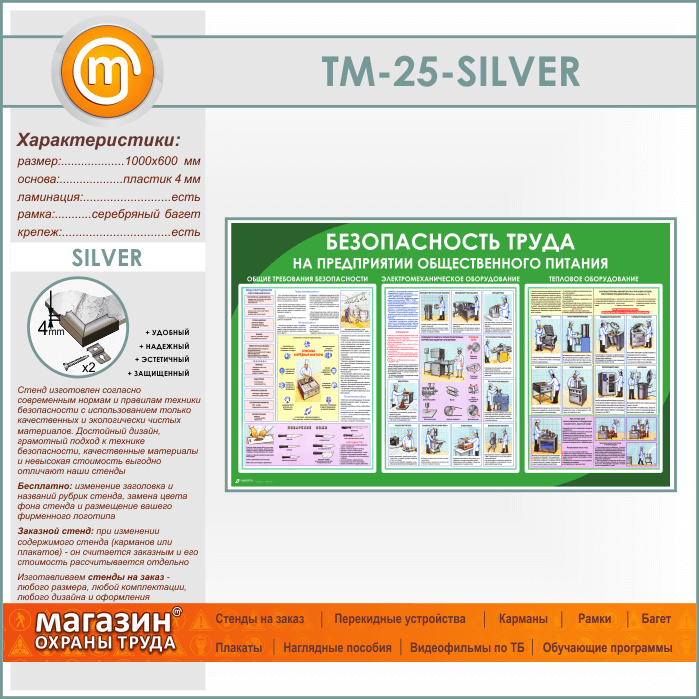 Стенд «Безопасность труда на предприятиях общественного питания» (TM-25-SILVER) в Улан-Удэ купить
