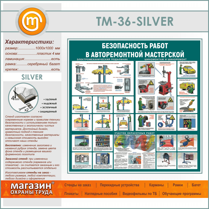 Стенд «Безопасность работ в авторемонтной мастерской» (TM-36-SILVER) в Улан-Удэ купить