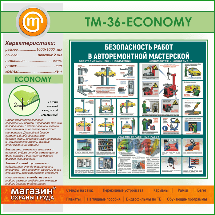 Стенд «Безопасность работ в авторемонтной мастерской» (TM-36-ECONOMY) в Улан-Удэ купить