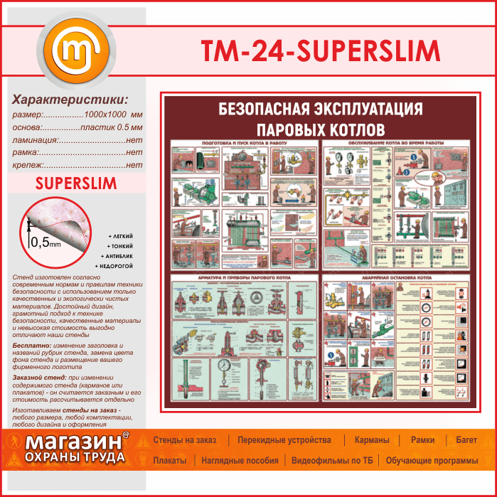Стенд «Безопасная эксплуатация паровых котлов» (TM-24-SUPERSLIM) в Улан-Удэ купить