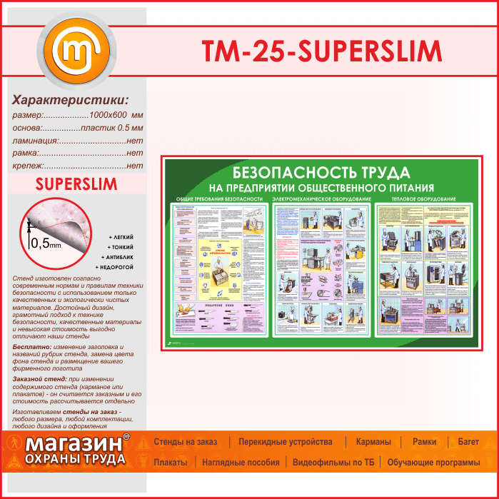 Стенд «Безопасность труда на предприятиях общественного питания» (TM-25-SUPERSLIM) в Улан-Удэ купить