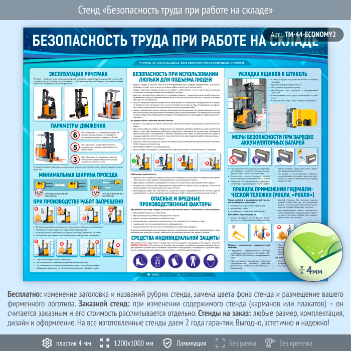 Стенд «Безопасность труда при работе на складе» (TM-44-ECONOMY2) в Улан-Удэ купить