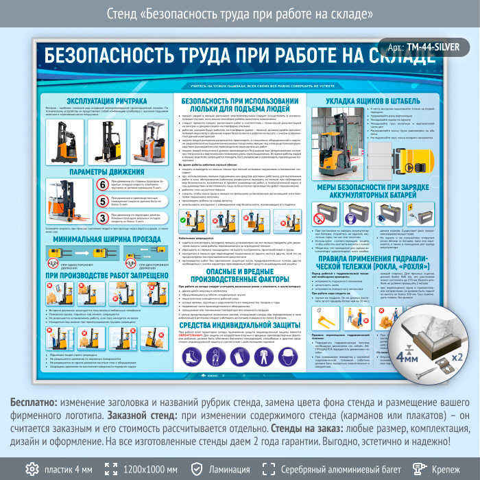Стенд «Безопасность труда при работе на складе» (TM-44-SILVER) в Улан-Удэ купить