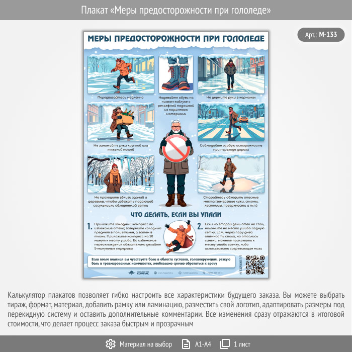 Плакат «Меры предосторожности при гололеде» с QR (М-133, 1 лист) в Улан-Удэ купить
