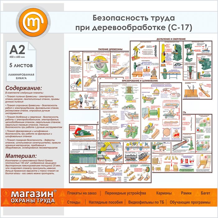 Плакаты «Безопасность труда при деревообработке» (С-17, ламинированная бумага, А2, 5 листов) в Улан-Удэ купить