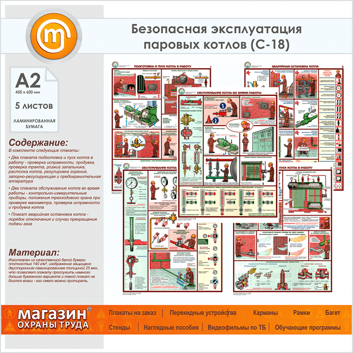 Плакаты «Безопасная эксплуатация паровых котлов» (С-18, ламинированная бумага, А2, 5 листов) в Улан-Удэ купить