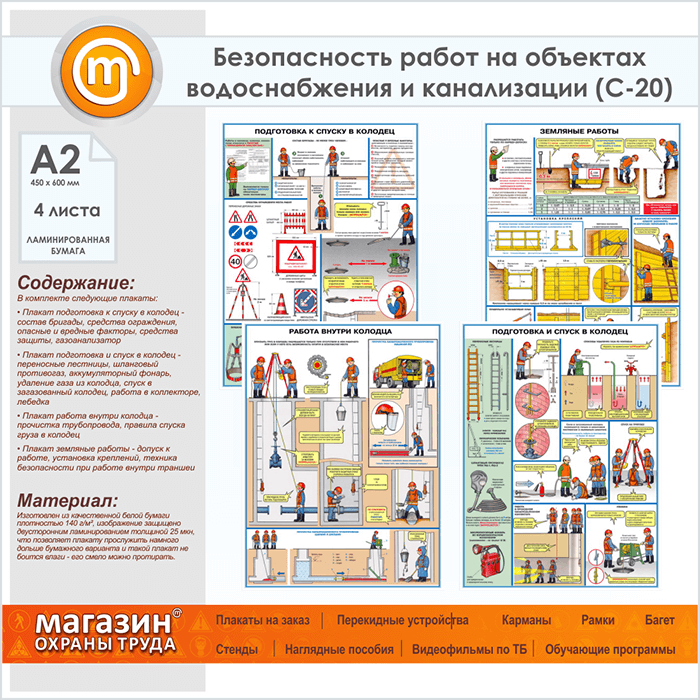 Плакаты «Безопасность работ на объектах водоснабжения и канализации» (С-20, ламинированная бумага, А2, 4 листа) в Улан-Удэ купить