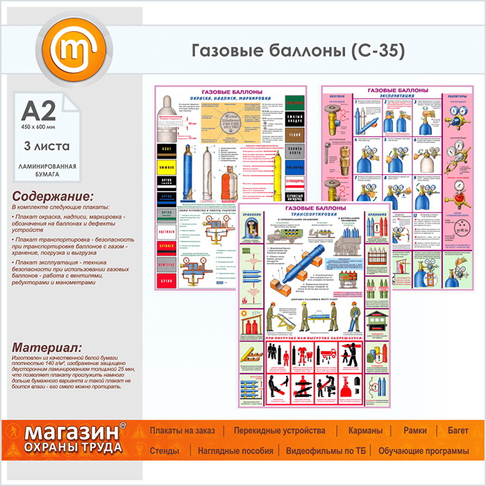 Плакаты «Газовые баллоны» (С-35, ламинированная бумага, А2, 3 листа) в Улан-Удэ купить