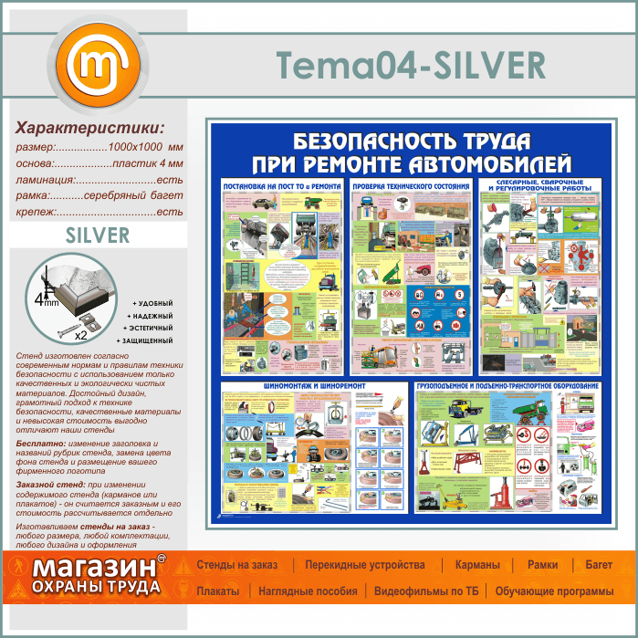 Стенд «Безопасность труда при ремонте автомобилей» (TM-04-SILVER) в Улан-Удэ купить