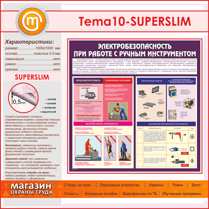 Стенд «Электробезопасность при работе с ручным инструментом» (TM-10-SUPERSLIM) в Улан-Удэ купить