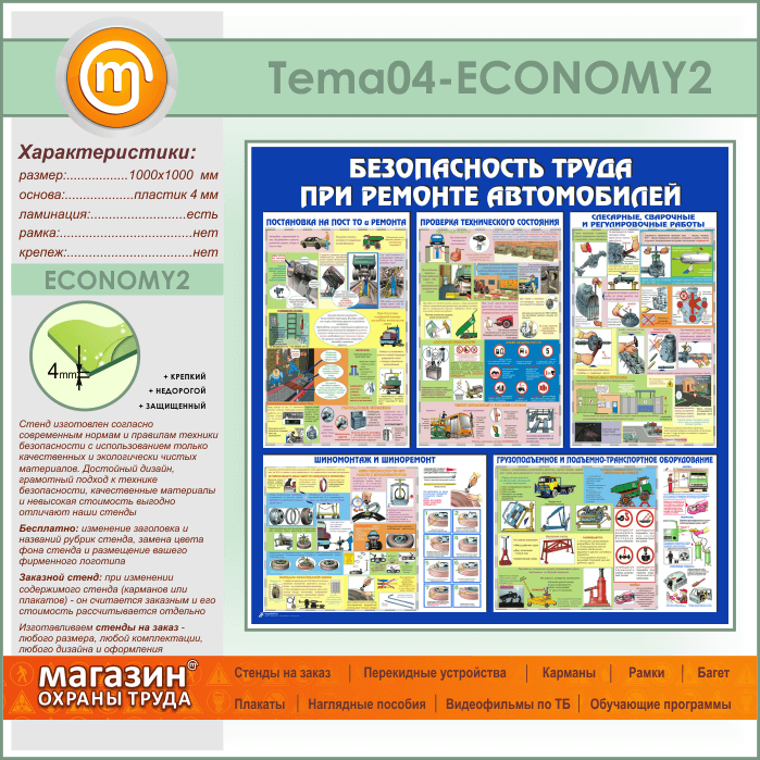 Стенд «Безопасность труда при ремонте автомобилей» (TM-04-ECONOMY2) в Улан-Удэ купить