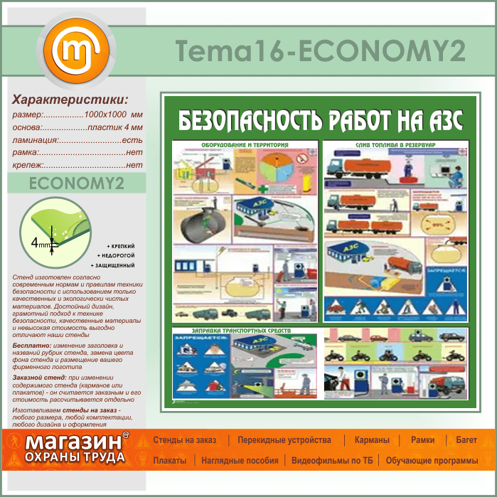 Стенд «Безопасность работ на автозаправочных станциях» (TM-16-ECONOMY2) в Улан-Удэ купить