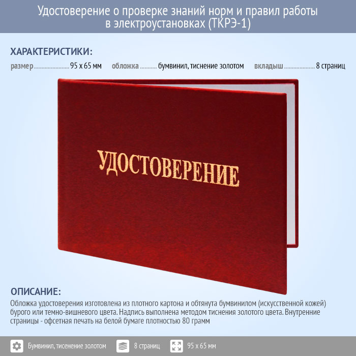 Бланк удостоверения о проверке знаний норм и правил работы в электроустановках (новый образец 2021 года) (ТКРЭ-1) в Улан-Удэ купить