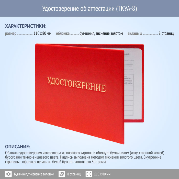 Бланк удостоверения об аттестации (ТКУА-8) в Улан-Удэ купить