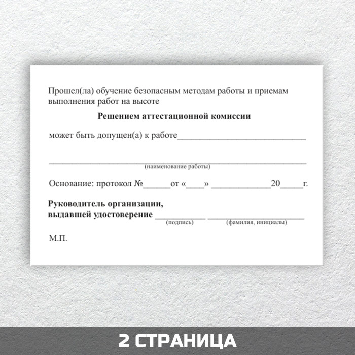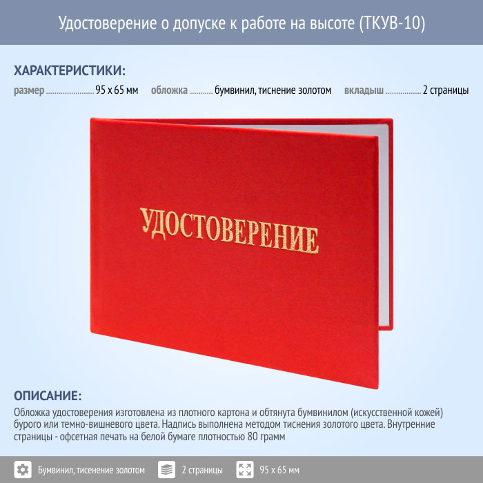 Бланк удостоверения о допуске к работе на высоте (ТКУВ-10) в Улан-Удэ купить