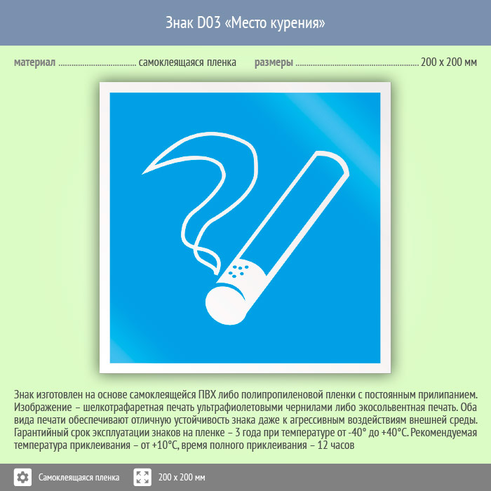 Знак D03 «Место курения» (пленка, 200х200 мм) в Улан-Удэ купить