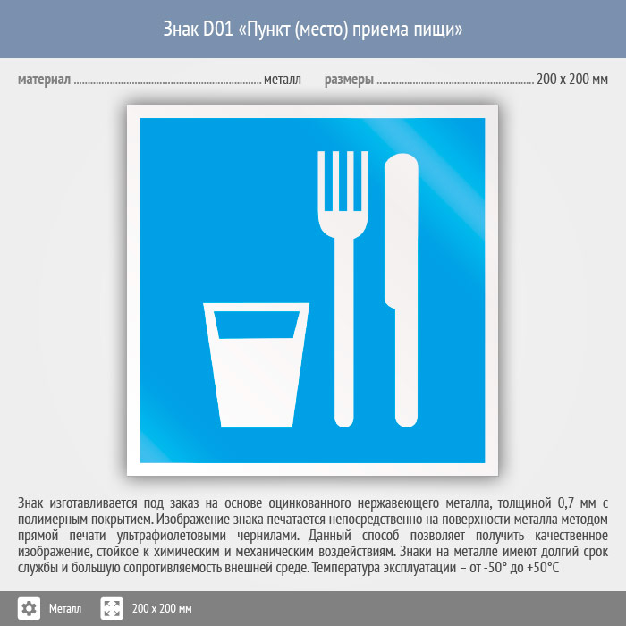 Знак D01 «Пункт (место) приема пищи» (металл, 200х200 мм) в Улан-Удэ купить