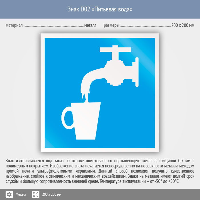 Знак D02 «Питьевая вода» (металл, 200х200 мм) в Улан-Удэ купить
