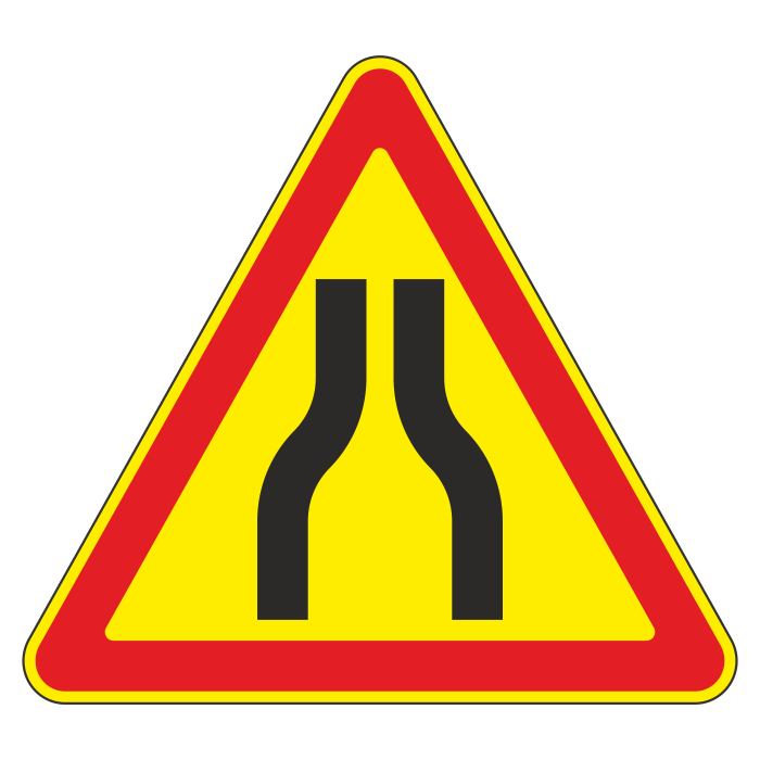 Дорожный знак 1.20.1 «Сужение дороги» (временный) (металл 0,8 мм, IV типоразмер: сторона 1500 мм, С/О пленка: тип А инженерная) в Улан-Удэ купить