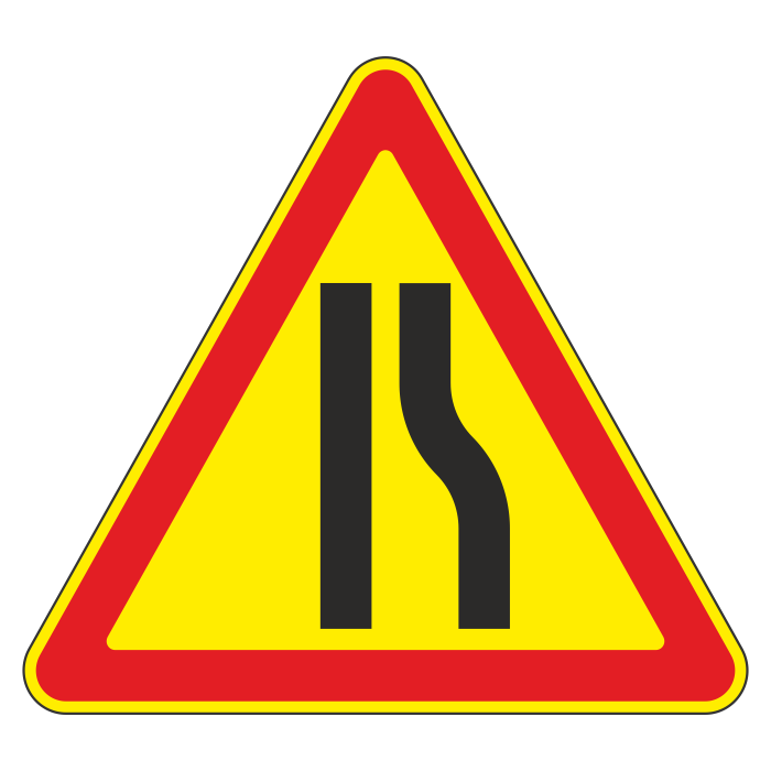 Дорожный знак 1.20.2 «Сужение дороги» (временный) (металл 0,8 мм, III типоразмер: сторона 1200 мм, С/О пленка: тип А инженерная) в Улан-Удэ купить