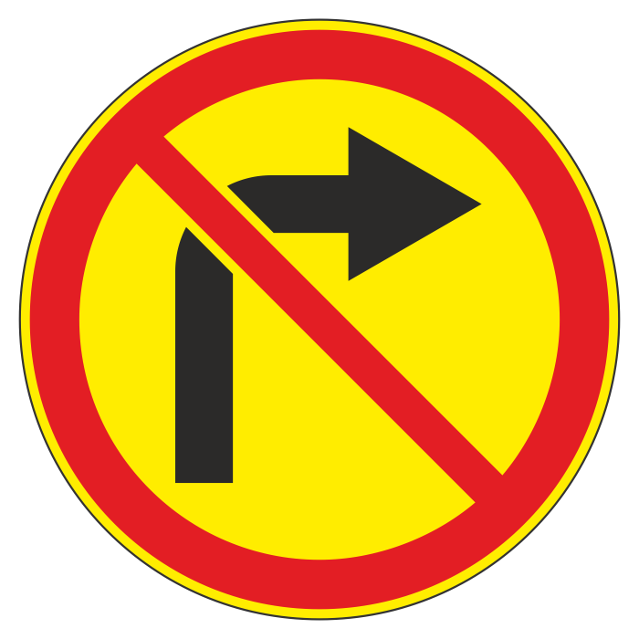 Дорожный знак 3.18.1 «Поворот направо запрещен» (временный) (металл 0,8 мм, I типоразмер: диаметр 600 мм, С/О пленка: тип А инженерная) в Улан-Удэ купить