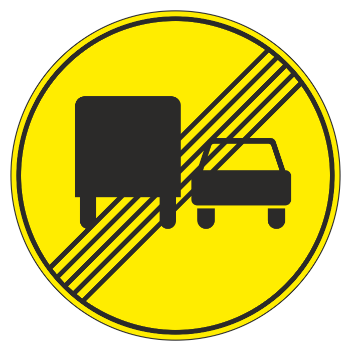 Дорожный знак 3.23 «Конец зоны запрещения обгона грузовым автомобилям» (временный) (металл 0,8 мм, III типоразмер: диаметр 900 мм, С/О пленка: тип В алмазная) в Улан-Удэ купить