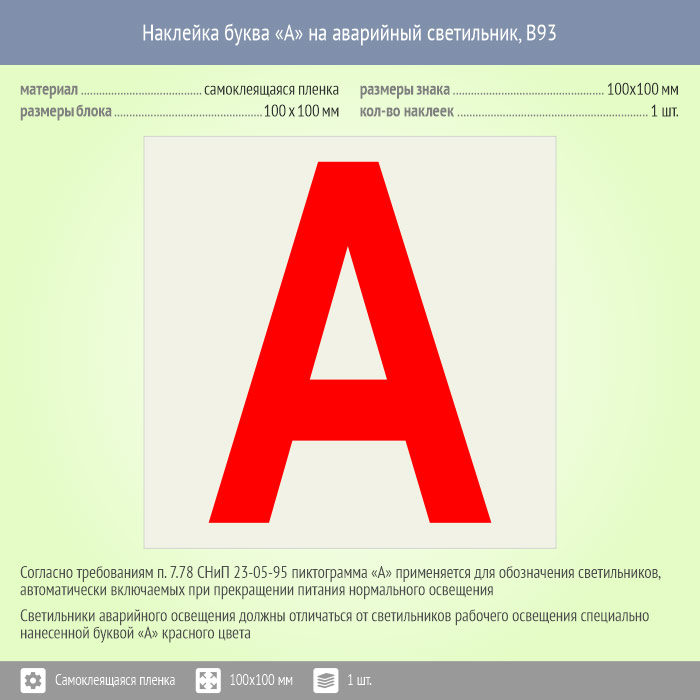 Наклейка буква «А» на аварийный светильник, B93 (пленка, 100х100 мм) в Улан-Удэ купить