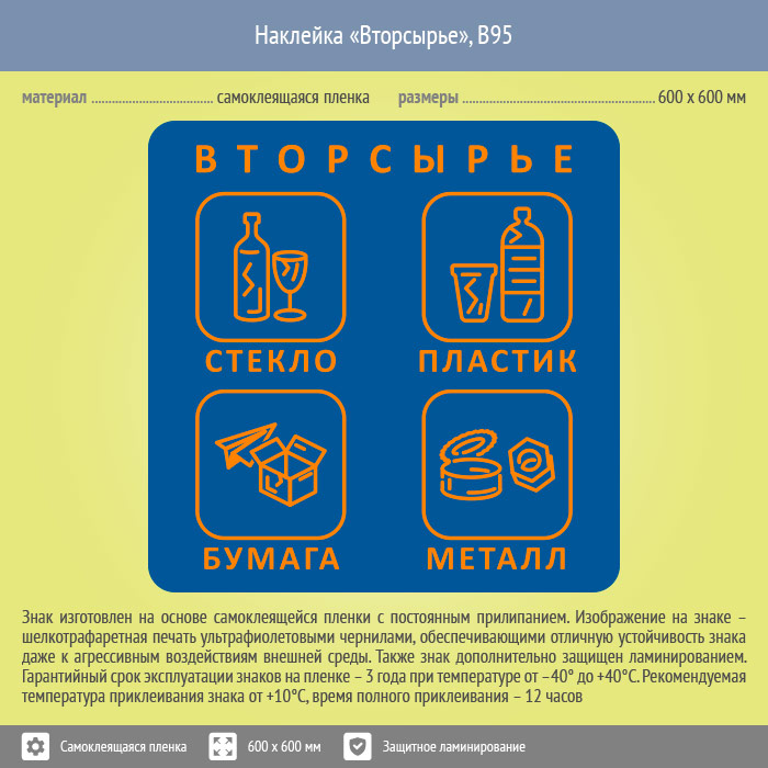 Наклейка на бак «Вторсырьё», B95 (пленка c ламинированием, 600х600 мм) в Улан-Удэ купить