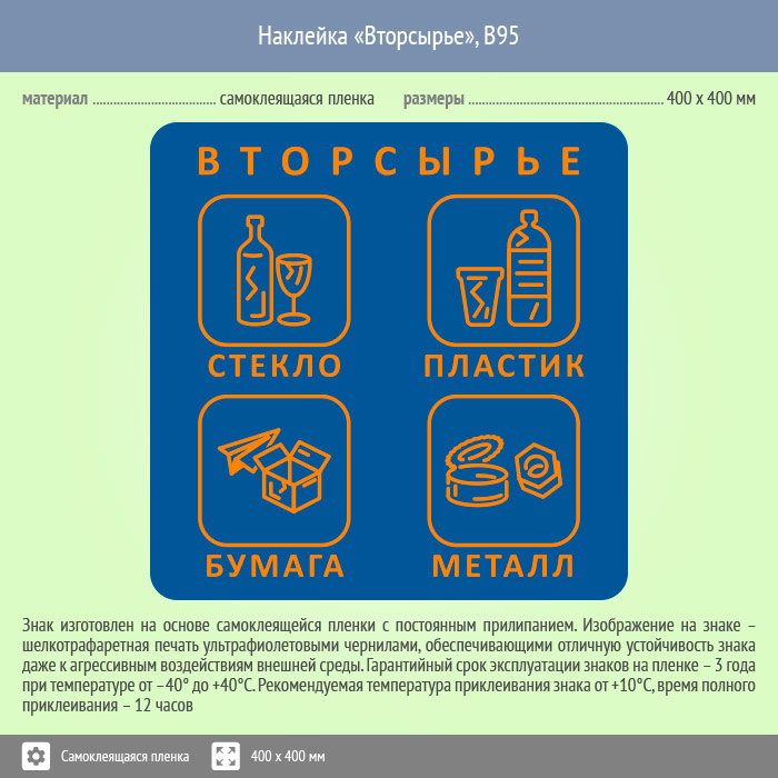 Наклейка на бак «Вторсырьё», B95 (пленка, 400х400 мм) в Улан-Удэ купить