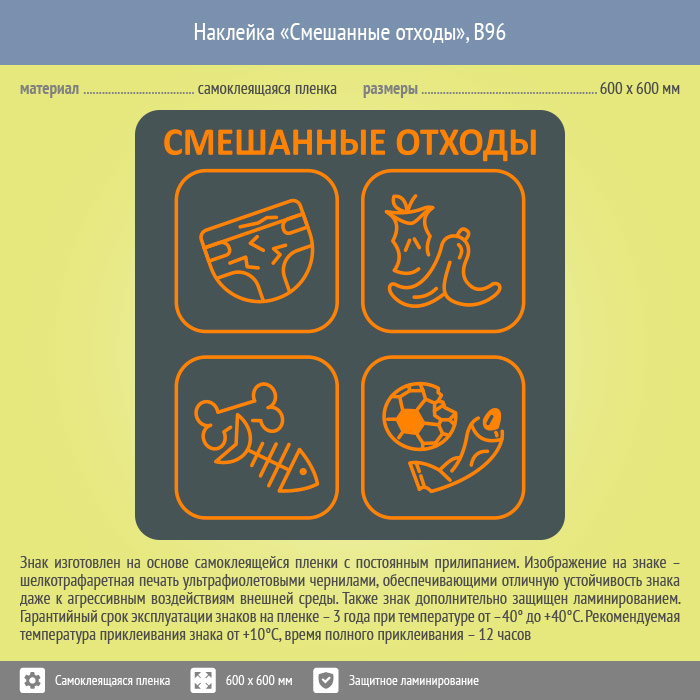 Наклейка на бак «Смешанные отходы», B96 (пленка c ламинированием, 600х600 мм) в Улан-Удэ купить