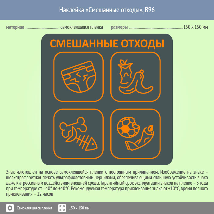 Наклейка на бак «Смешанные отходы», B96 (пленка, 150х150 мм) в Улан-Удэ купить