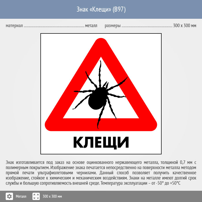 Знак «Клещи», B97 (металл, 200х200 мм) в Улан-Удэ купить