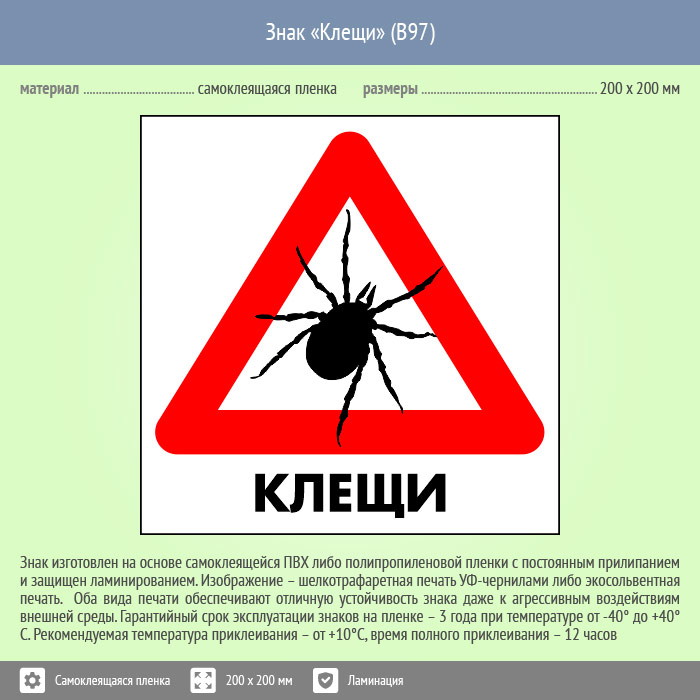 Знак «Клещи», B97 (пленка c ламинированием, 300х300 мм) в Улан-Удэ купить