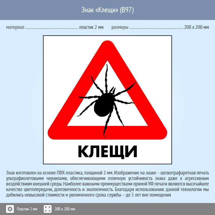 Знак «Клещи», B97 (пластик, 300х300 мм) в Улан-Удэ купить
