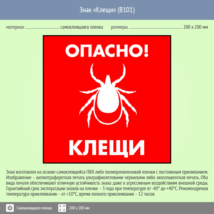 Знак «Опасно! Клещи», B101 (пленка, 200х200 мм) в Улан-Удэ купить