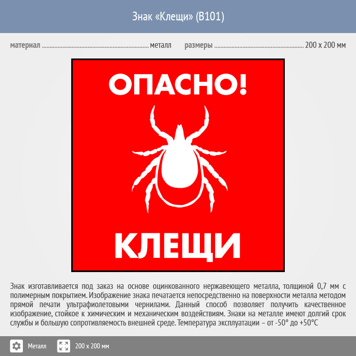 Знак «Опасно! Клещи», B101 (металл, 200х200 мм) в Улан-Удэ купить