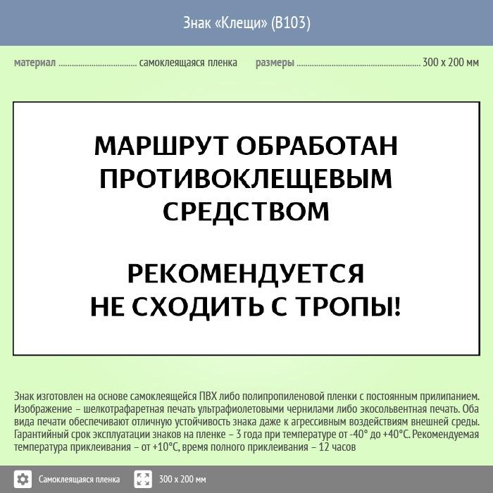 Знак «Клещи», B103 (пленка, 400х300 мм) в Улан-Удэ купить