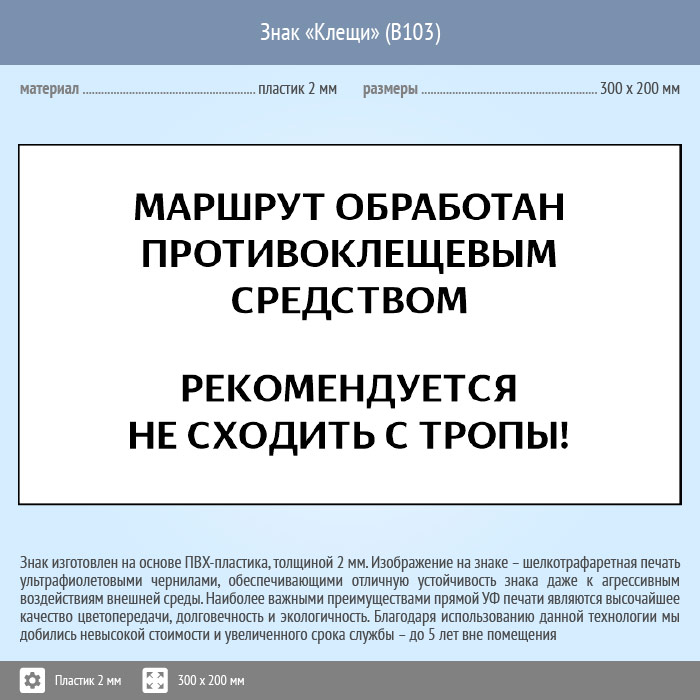 Знак «Клещи», B103 (пластик, 400х300 мм) в Улан-Удэ купить