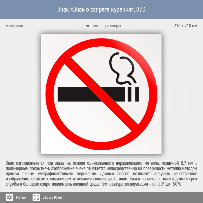 Знак «Знак о запрете курения», B73 (металл, 210х210 мм) в Улан-Удэ купить