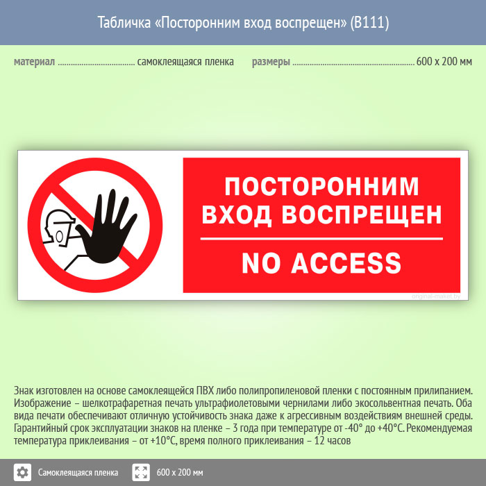 Табличка «Посторонним вход воспрещен», B111 (пленка, 600х200 мм) в Улан-Удэ купить