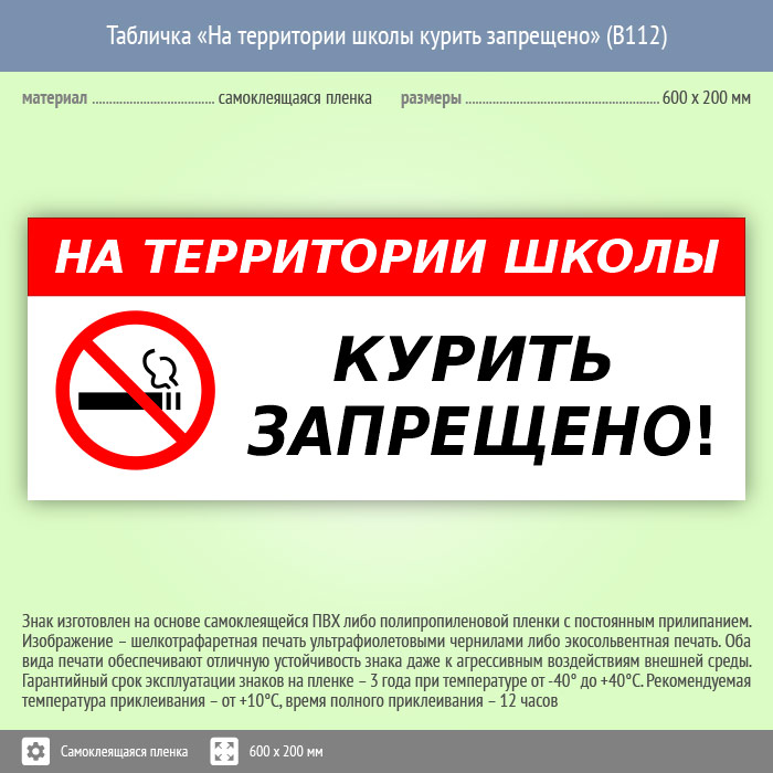 Табличка «На территории школы курить запрещено», B112 (пленка, 600х200 мм) в Улан-Удэ купить