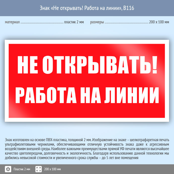 Знак «Не открывать! Работа на линии», B116 (пластик, 200х100 мм) в Улан-Удэ купить