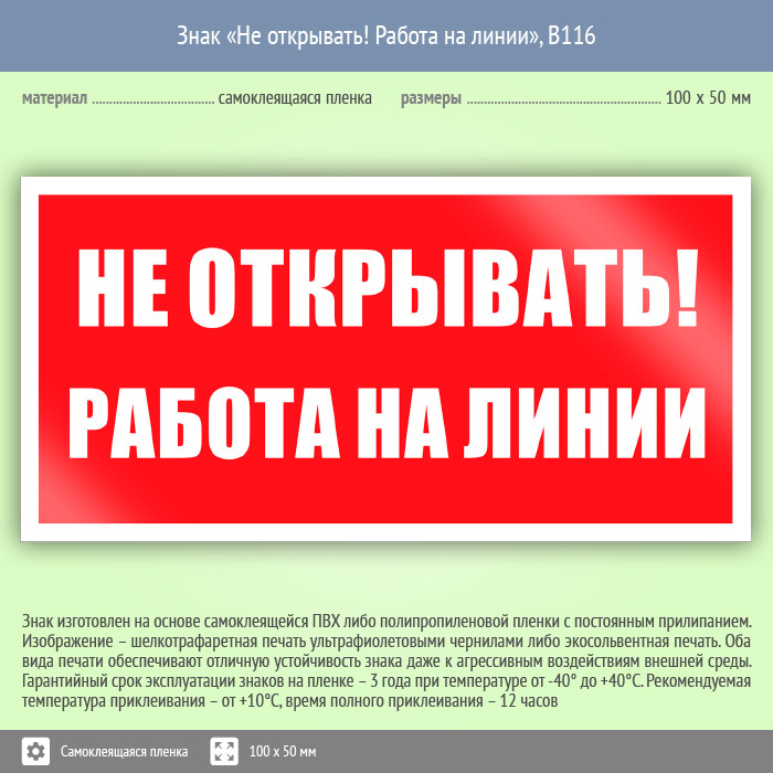 Знак «Не открывать! Работа на линии», B116 (пленка, 100х50 мм) в Улан-Удэ купить