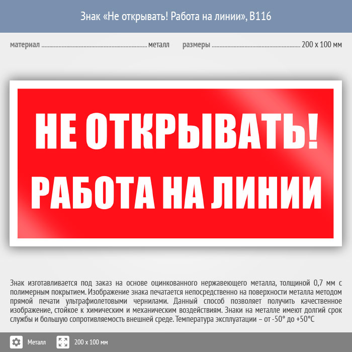Знак «Не открывать! Работа на линии», B116 (металл, 200х100 мм) в Улан-Удэ купить