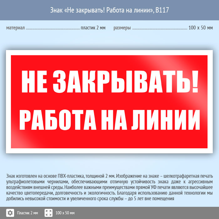 Знак «Не закрывать! Работа на линии», B117 (пластик, 100х50 мм) в Улан-Удэ купить