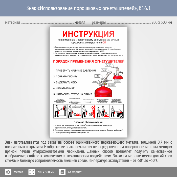 Знак «Использование порошковых огнетушителей», B16.1 (металл, 200х300 мм) в Улан-Удэ купить