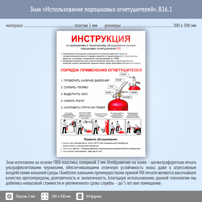 Знак «Использование порошковых огнетушителей», B16.1 (пластик, 200х300 мм) в Улан-Удэ купить