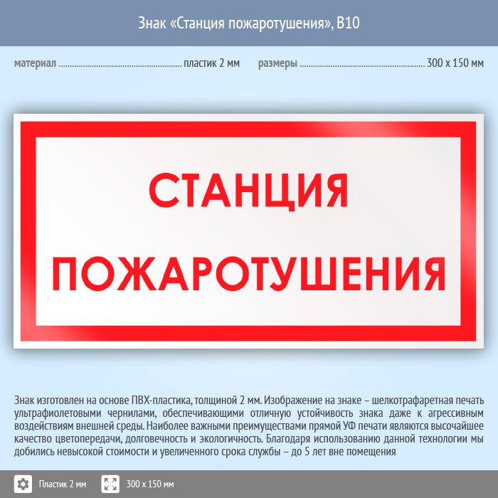 Знак «Станция пожаротушения», B10 (пластик, 300х150 мм) в Улан-Удэ купить