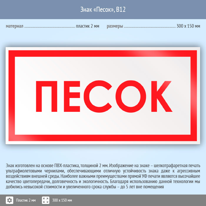 Знак «Песок», B12 (пластик, 300х150 мм) в Улан-Удэ купить
