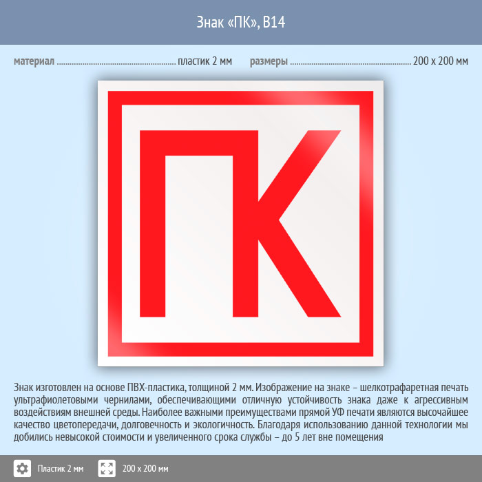Знак «ПК», B14 (пластик, 200х200 мм) в Улан-Удэ купить